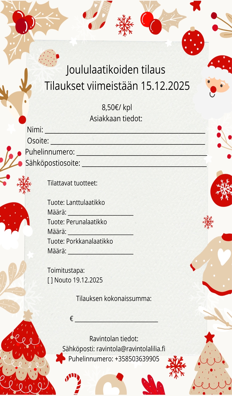 Tilaa herkulliset joululaatikot Ravintola Lilialta 15.12.mennessä.